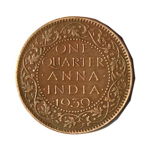 OLD RARE ONE QUARTER ANNA YEAR 1939 GEORGE VI KING EMPEROR