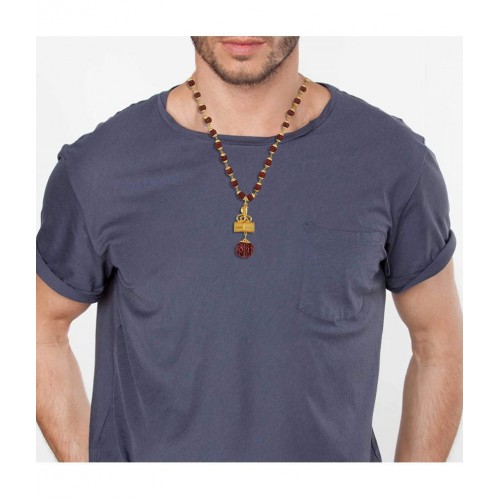 The ultimate spiritual pendant, this pendant comprises of both two symbols associated with Lord Shiva. The symbols too have the significance: Rudraksha: The most powerful, bead reverred in Hindy mythology, which is supposed to drive all evil forces away, besides protecting the wearer. Damru sound is said to ward off the evil forces. Thus this is a thoughtfully created meaningful pendant, which is made with 100% anti-allergy,skin safe metal. 24 Inch Gold Plated Brass Rope chain comes with it. It can be worn by all genders, young and old. A very good gifting option, for all occassions and all age groups.
