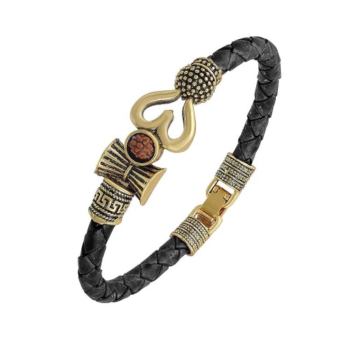 PAYSTORE Gold Plated Wheat Cutt & Kadaa Bracelet-AND OM RUDRAKSHA CAP MALA