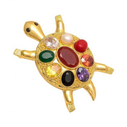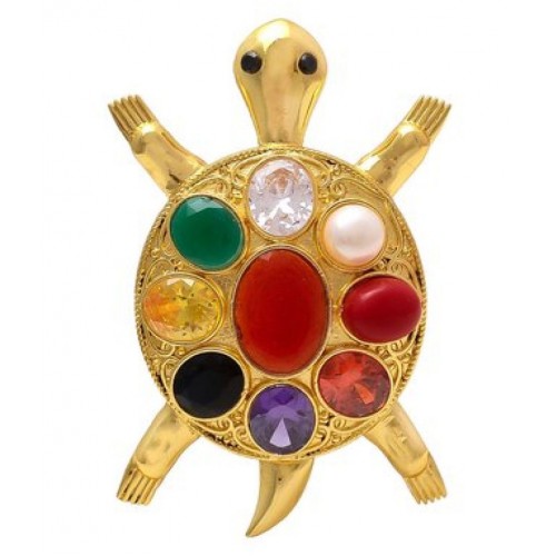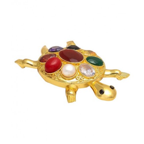 High Quality Metal -Brass, Polish- Gold, Package Contain- Only Navratan Tortoise.All gemstones are Semiprecious and denotes respective planets.Stone – Ruby, Pearl, Red Coral, Emerald, Yellow Sapphire, Diamon, Blue Sapphire, Hessonite, Cat’s Eye.Product Care: Avoid Spraying Perfume or Deodorant Over Jewellery. Avoid Direct Contact from Water And Other Chemicals. It is Important to Store Handmade Jewellery Carefully As Each Piece is Unique.Placement of tortoise for stabilising energy An ideal place for placing the tortoise is the back of your house. However, the tortoise can be placed in different directions: Placing the tortoise at the very entrance will safeguard your home from negative energy. Placing it close to an artificial waterfall or fish tank will magnify the power of the tortoise. Placing the tortoise in the north sector is good for your career. Placing the tortoise in the east sector is good for creating a dedicated attitude.