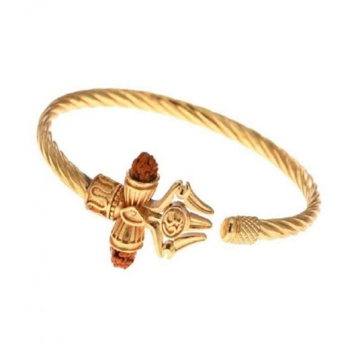 PAYSTORE Rudraksha Trishul Damroo Designer Oxidized Silver Bahubali Kada Kadas Bracelet for Men & Women Boys (Gold)