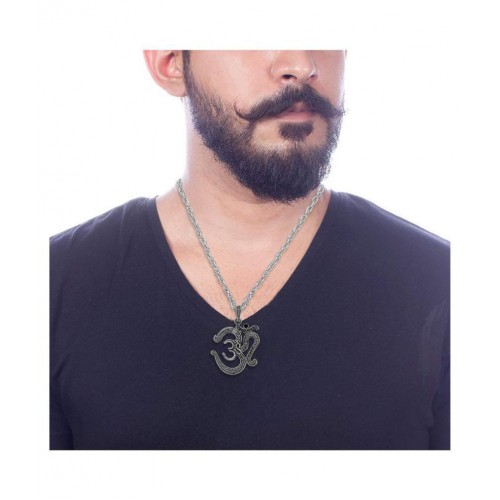 Silver Plated Brass Shiva Mahadev Bolenath Symbols dual Om Pendant, with 24 Inch Gold plated Brass Rope Chain S-hook design Elegant Shiv Symbols Mahadev Om Pendant design, with Exact OM proportions. Silver plated real Gold look, ideal to wear as dailyuse pendant, by all Genders and Age groups. All occasion wear. and a gift for any age or any gender. Made with Skin safe Brass alloy.An elegant Silver plated Dual Om pendant, adds to charm and attracts attention. An all time, wear, and just right size, for a daily wear pendant.The design has very fine craftsmanship and image is finely crafted with attractive features. A very good dailywear pendant, for all Men/Women/Girls or boys. It can be a good gifting idea, for all, specially the older people.