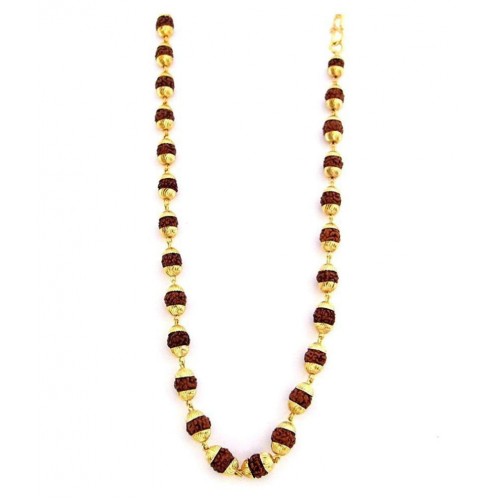 PS Creations Brown Gold Plated Rudraksha Mala for Men and Women (52 Seeds)