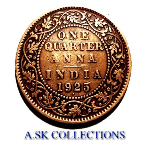RARE ONE QUARTER ANNA YEAR 1925 GEORGE V KING EMPEROR A