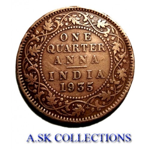 RARE ONE QUARTER ANNA YEAR 1935 GEORGE V KING EMPEROR FOR COLECTION