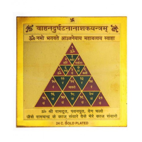 Vahan durghatna nashak yantra is very powerful yantra to get protection from accidents.'Vaahan' is vehicle and 'Durghatna' is accident. As the name denotes, this Yantra ensures protection from accidents, injury, or other mishaps, especially those related to vehicles. It acts as a shield to protect and save the worshipper from any such misfortunes and ensures his own family and his belonging safety during journeys. This yantra is a good buy for persons who met with accidents consistently.