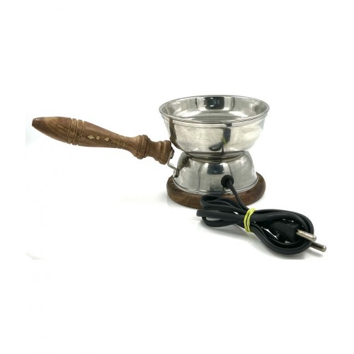 Electric Heavy Quality Steel Large Kapoordani/Aroma Oil Burner/Commercial Incense Burner/Champion Metal Bakhoor Burner with Sturdy Wooden Handle, Durable Cable and Plug
