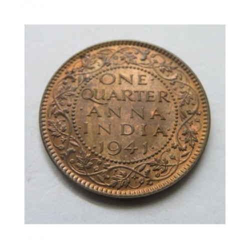 VERY RARE & CUTE COLLECTIBLE: NUMISMATIC YEAR OF IMPORTANCE *1941* GEORGE VI KING EMPEROR QUARTER ANNA COIN, IN IMPRESSIVE CONDITION