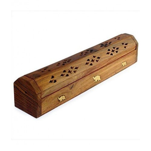 This beautifully crafted incense stick case cum holder is surely going to appeal to you. It makes for an interesting table piece that enhances the look of your home and Pooja room. It is a clean and safe way to burn incense as the ash is collected in an enclosure without creating mess. It is safe to use as it prevents children from getting burns. Product Features:- Multifunctional Works As A Storage Case As Well As Holder- The Bottom Enclosure/Stash Is Used To Store The Sticks While The Top Is Used To Hold The Sticks Handmade From Wood with Copper Colored Metallic Fillings of Elephant Designs. Contains one Hole To Hold Incense Stick and A Metallic Plate For Dhoop Easy To Clean - It Has An Ash Collecting Enclosure That Enables Easy Disposal Of Ash. As The Ash Is Collected At One Point, It Prevents The Ash From Falling and Creating Mess. Safe - As The Burned Incense Stick Is Covered with The Lid, It Is Safe When Children are around. Prevents Burns Caused By Agarbatti.