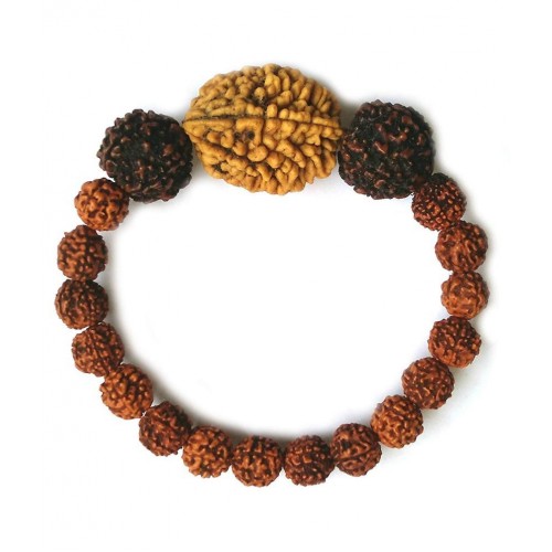 Yuvi Shoppe 2 Mukhi Rudraksh, 5 Mukhi Beads Wrist Band Bracelet for Men and Women (Brown)