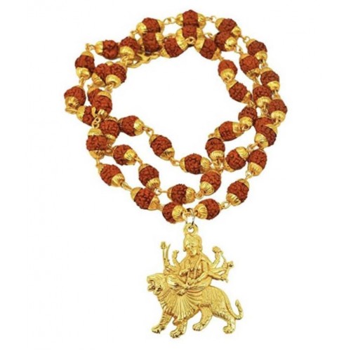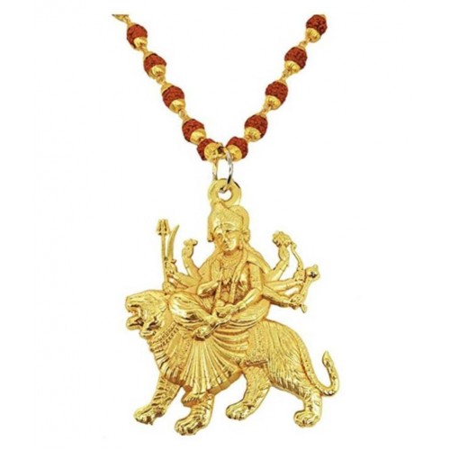 db enbloc This Goddess Durga gold plated pendant with chain would be a great addition to your divine accessory collection. How To Wear It: Wear this Durga pendant with a formal or casual attire and be a step ahead in style! Own The Part: This pendant chain is a perfect wear for any festive occasion. """ To make your accessories last longer avoid harsh chemicals and moisture. Keep dry, clean with dry cloth and wear with panache.he person who wears Rudraksha possess always good health. Rudraksha worshipped as a source of good luck, good health, prosperity, medical values, success, and financial gains and for eradication of evil forces.