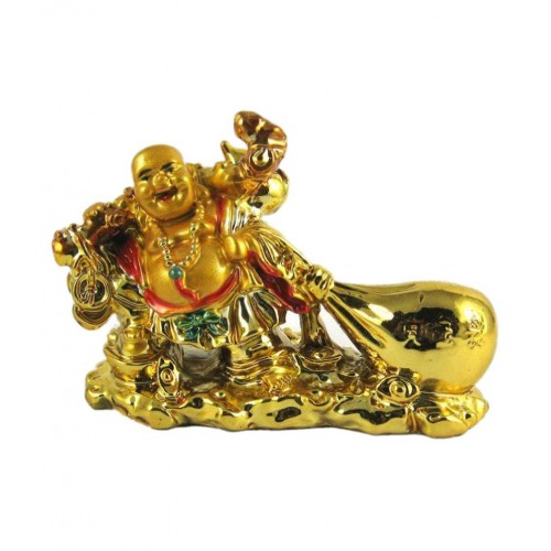 The statue of a Happy Buddha sitting on a Dragon Turtle signifies happiness, good luck and fortune. The Dragon Turtle sitting on a bed of coins and gold ingots is a distinct representation of wealth and prosperity. The Dragon Turtle is a Chinese legendary symbol depicting the dragon’s head and the turtle’s body. The dragon represents courage and strength. The turtle stands for support and stability. This powerful combination of two Feng Shui symbols brings together the qualities of the dragon and the turtle, which indicates long life, permanence and success. The Happy Buddha on a Dragon Turtle is known to be a perfect remedy to combat bad luck which comes in the form of illness, financial losses, and mishaps.