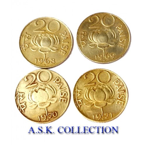 old rare 4 coins set lotus 20 paise coins 1968-1971