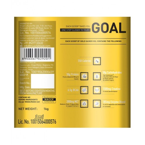 Muscleblaze Gold Gainer XXL is nothing but a mixture of some of the finest ingredients in the world carefully crafted to deliver superior results. Proteins are derived from finest Whey and Casein.