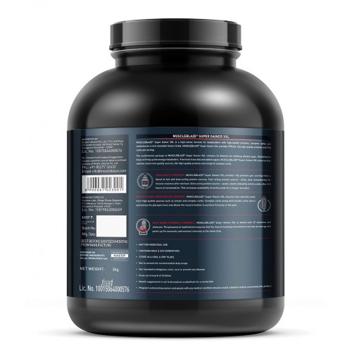 MuscleBlaze Super Gainer XXL offers high-quality proteins and complex carbohydrates in the ratio of 1:5 to the bodybuilders, which gives them energy for intense training sessions.   27 vitamins and minerals build energy and immunity in the muscle builder. Additional energy helps them sustain longer workouts.  MuscleBlaze Super Gainer XXL has no-added sugar and zero trans fats.