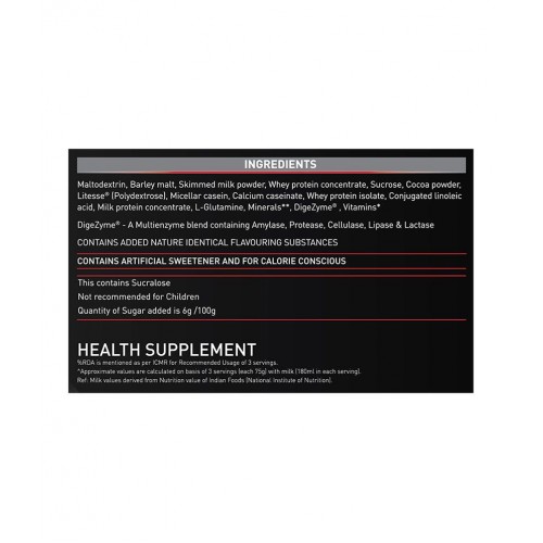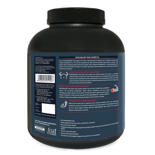 1. The MuscleBlaze Mass Gainer Chocolate has an excellent composition that allows you to grow muscles quickly. 2. The supplement supplies nutrients to muscle tissues after a strenuous workout and trigger new muscle synthesis. 3. Helps give you strength and muscle power. 4. Each serving contains only 4.5g sugar and heavily focuses on complex carbs and high-quality proteins to fill in the calorie needs.FSSAI's Initiative on Safe & Nutritious Food. Please visit https://www.snfportal.in