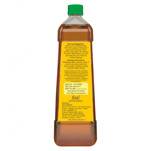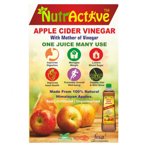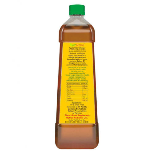 Nutractive Apple Cider Vinegar is 100% natural, raw unfiltered & unpasteurized retaining the natural residue and goodness as a mother of vinegar with its richness in natural components. NutrActive is made from the juice of delicious Himalayan apples fermented to 5% for better digestive properties. Nutractive ACV is full of potent antioxidants, vitamins, minerals & enzymes and is enjoyed by many as a nourishing tonic, culinary wonder and household must-have for its unique alkalizing properties. It is also used as flavoring agent and for various health benefits such as healthy immune system, improved digestion, weight management, improved cardiovascular health, detoxification & cleansing. Nutractive ACV improves satiety or feeling of fullness and helps manage weight whilst maintaining healthy digestion. When paired with healthy nutrition and exercise. Nutractive ACV assists in whitening teeth and removing bad breath. ACV to be useful for diabetics with type 2 diabetes in lowering blood sugar levels.