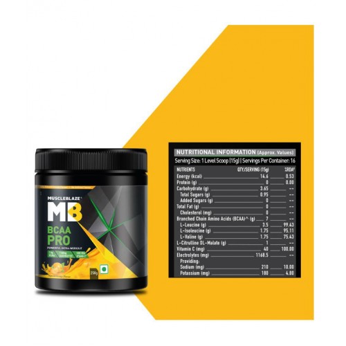MuscleBlaze BCAA Pro, 7g Vegan BCAAs & 100% RDA of Vitamin C (Natural Orange, 250 g, 16 Servings)