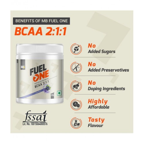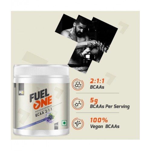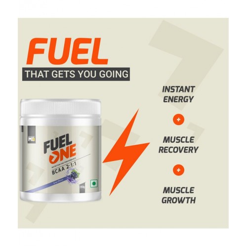 MuscleBlaze Fuel One BCAA is an intra-workout drink that provides instant energy and supports muscle recovery & muscle gains during workouts. It delivers the Branched Chain Amino Acids in the ratio 2:1:1.Crafted to provide the best fuel to your body to conquer your workouts and help you achieve your muscle-building goals. Each serving provides 5 g of BCAAs that helps in soothing the muscles for quick muscle recovery post-workout. It contains BCAAs from a vegan source compared to the commonly used animal source in other BCAA supplements.