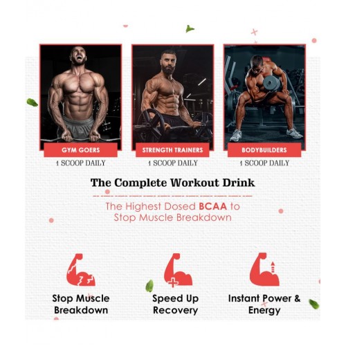 NATURYZ BCAA ENERGY BLAST is an powerful Intra-workout Endurance Fuel drink of muscle building and muscle recovery boosters added with rehydrating electrolytes for professional bodybuilders, athletes, power lifters and weight training enthusiasts. •7G of Pure Isolated BCAAs in the scientifically proven 2:1:1 ratio to replenish the amino acids your muscles loose during workout •1.5G GLUTAMINE to speed up the rate of muscle recovery •0.5G CITRULLINE MALATE for increased pump during the Workout •0.5G BETA ALANINE to build Endurance for a Powerful workout to break your records. 1) 7000 PURE INSTANITIZED VEGAN BCAA: Naturyz delivers the highest and the right dose of 7000mg of Pure Vegetarian Instantized bcaa's in the scientifically proven 2:1 ratio to prevent Muscle breakdown & Speed up recovery. 2) THE COMPLETE WORKOUT DRINK: This product is not just a plain BCAA Supplement It is a unique combination of Preworkout Intra-workout & Post workout boosters added with Electrolytes to help you stay hydrated throughout your gym workout. 3) POWER PACKED WITH THE BEST BODYBUILDING NUTRIENTS: Apart from providing 7g BCAA's this powder energy drink also contains Glutamine, L Citrulline & Beta alanine for Muscle recovery pump and power. 4) VALUE FOR MONEY: Now you don't have to buy different products for pre workout intra workout and post workout. So why pay for different supplements when you can get them all in one supplement. 5) QUIKER ABSORPTION OF INSTANITIZED BCAA: Although there are many other BCAA capsules powders present in market but Instantized powder has faster absorption into the muscles which is of utmost importance while choosing any Bcaa. It is dope free. |