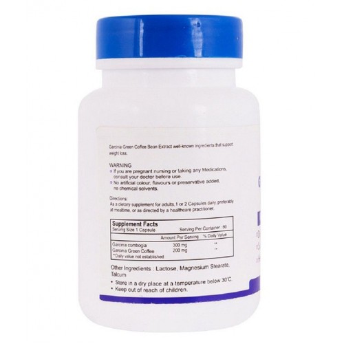 1. Live a healthy life and reduce that additional fat with Healthvit Garcinia Cambogia plus Green Coffee 500 Mg Extract 60 capsules from the house of Healthvit. 2. These vitamin capsules play an important role in maintaining health and giving us the much needed boost in our daily lives. 3. Regular intake of these dietary supplements encourage loss of additional weight and are an ideal pick for fitness enthusiasts. 4. These dietary vitamin supplements help the body metabolize fats and proteins. 5. These capsules also promote over all wellness and good health. 6. These vitamin supplements help the body fight and prevent ailments. 7. With proper use of these dietary supplements, your day will bubble with energy. 8. This health beneficial pack has 60 capsules.