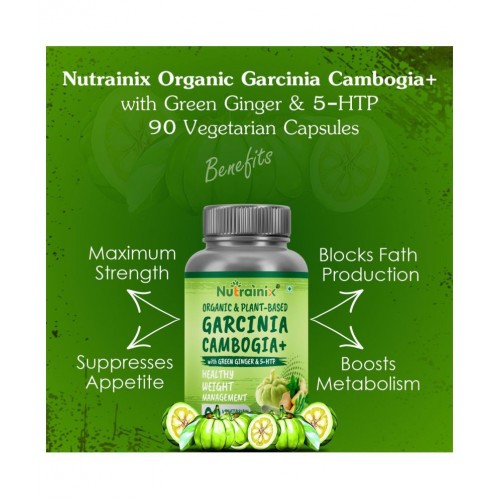Nutrainix Organic Garcinia Cambogia+ with Green Ginger & 5-HTP - 90 Vegetarian Capsules 90 no.s Unflavoured