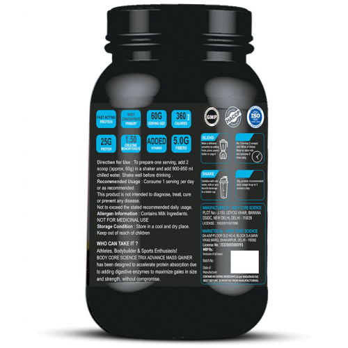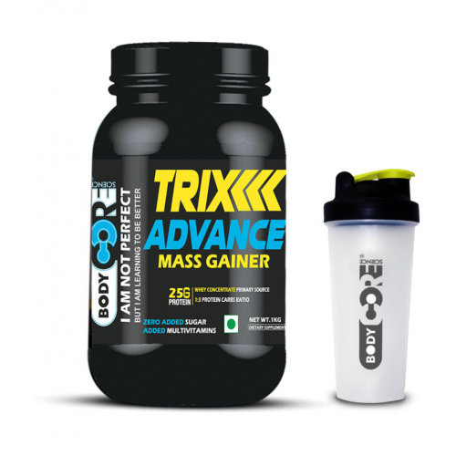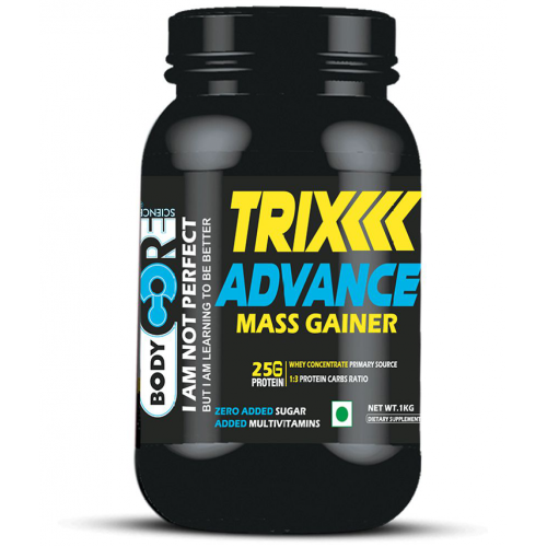 Trix Advance Mass Gainer is a muscle building formula enriched with whey proteins and High quality carbohydrates. The main source of protein is whey protein and no other cheap source like rice protein or soy protein has been used.it is formulated in an ideal muscle building ration of 1:3 in protein to carbohydrates. It is also enriched with creatine per serving making it an ideal mass building gainer.