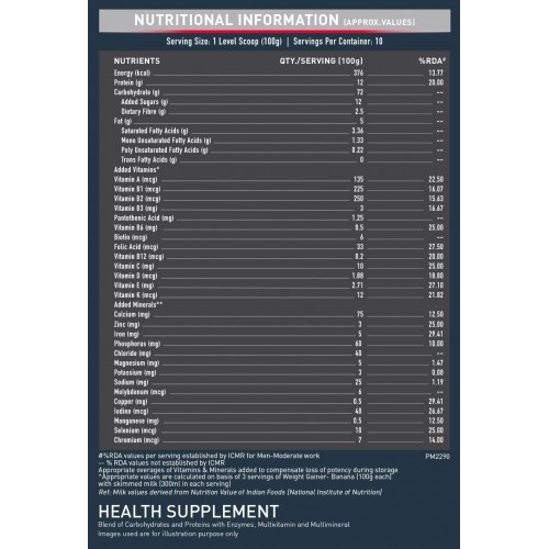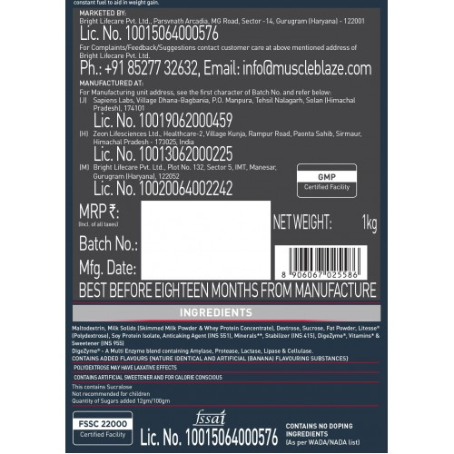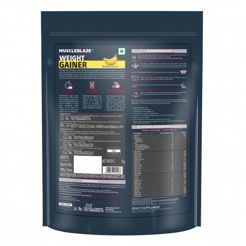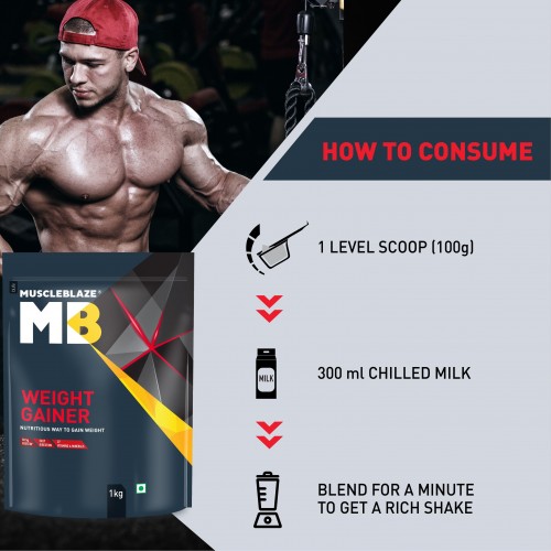 MuscleBlaze weight gainer with added digezyme encourages healthy weight gain in individuals who have tough time gaining and maintaining weight. Serious weight gain requires serious calories. In real life, consuming large quantity of food is difficult. Factors like poor appetite and hectic lifestyle act as common challenges for weight gain. MuscleBlaze weight gainer in addition to a balanced diet fulfills high calorie needs with premium nutrition. Each serving provides high quality proteins, complex carbs, and digestive enzymes in a ready-to-drink chocolate flavored shake. Anyone who wants to gain weight in simple and effective way, be it men, women, bodybuilders or athletes would see immediate results when taken in recommended dosage.