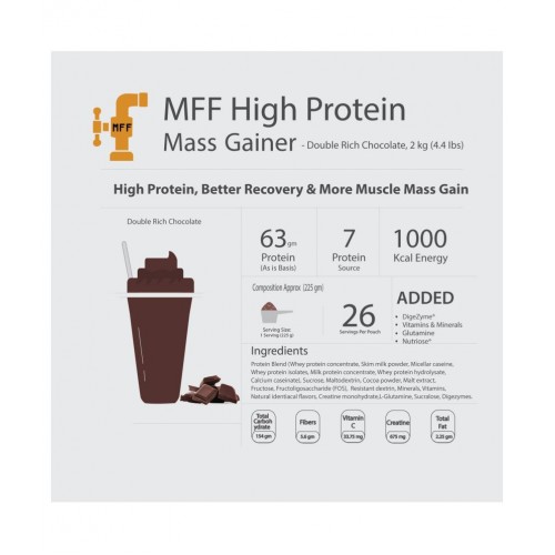 High Protein from 7 different protein source. Provides 1:3 Ratio Proteins to Carbohydrate. Provides 167gm Carbohydrate and 40.5gm Protein in Rich Chocolate Delight Flavor when taken with milk. Provides Upto 8 hours Time Released Protein continuous supply of Protein. It Helps in Building Lean Muscle Mass. Also Added Glutamine and contains more BCAA for better repair and recovery of muscles. Low in Sugar & Contains No Aspartame. Added Digezyme Blend latest Digestive Enzymes Technology. Digezyme are made of unique researched combination of Gluten Free & GMO Free Multi Enzyme Blend which includes amylase, lactase, cellulase, lipase and protease. Added enzymes helps in better digestion and removes the bloated feeling. They also helps in making sure that the overall protein content and other nutrients gets absorbed more quickly so as to get quick benefits and better recovery. Also includes Added 22 Vitamins and Minerals for better overall nourishment & growth of body. Ratio of vitamins & minerals used are determined keeping into mind special consideration of improving your workout performance & recovery. Added Vitamin B in every serving helps in providing energy from carbohydrate. Added Vitamins C helps to maintain strong immunity of body & formation of hemoglobin to transfer oxygen to muscles and other part of body. Added Vitamin D for calcium absorption helps to minimize stress fractures. Added Fiber Nutriose as an Additional Clinical Researched Fiber Sourcer. Added Fiber plays an very important role in better digestion. MyFitFuel Advance Mass Gainer contains special Fiber which is clinically researched & proven to provide an outstanding digestive tolerant. Nutriose benefits makes this product as wonderful source of high fiber advance mass gainer. No other Dairy Whiteners, No Soy Protein, No Color, No Sugar, No Artificial Flavor or Preservatives added. You can always authenticate every MyFitFuel Product through scratch codes given below the product. MyFitFuel is First in India back in year 2013 to bring knowledge on 100% Transparency which also informs abou information on cheap fillers, thickeners & later in year 2017 we are first in India to bring better knowledg on differentiation of “Dry basis” Protein vs “As is basis” protein. You can always read complete details on Product Page on MyFitFuel website.