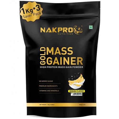 NAKPRO GOLD MASS GAINER is a high calorie mass gainer having complex carbohydrates with balanced blend of protein for three source it helps gain healthy muscle mass, enhances recovery, supports healthy metabolism and also provide additional strength & energy during workout. Direction For Use. STIR: NAKPRO GOLD MASS GAINER is a high protein mass gainer and is easy to mix. Just add 3 heaping scoops (100g) of the powder to a glass of 180-200ml of water/skimmed milk/any other beverage of your choice, then stir with a spoon for about 30 seconds or until the powder is completely dissolved and your drink is ready. SHAKE: Alternatively, if you are using a shaker, just add Just add 3 heaping scoop (100g) of the powder to a glass of 200-220ml of cold water or your favourite beverage, shake for 30 seconds for a thick and creamy shake. BLEND: Use a blender to make a delicious smoothie by adding a heaping scoop (33g) of the powder to 180-200ml beverage of your choice along with ice cubes and exciting fresh or frozen fruit, peanut butter, coffee or other healthy ingredients. DOSAGE: Take 1-2 shakes per day or as recommended by a nutritionist to build lean muscle mass. Free scoop inside. CAUTION: It contains milk and dairy derivatives, hence not suitable for people with lactose intolerance. STORAGE CONDITIONS: Store in a cool, dry place, away from direct sunlight.