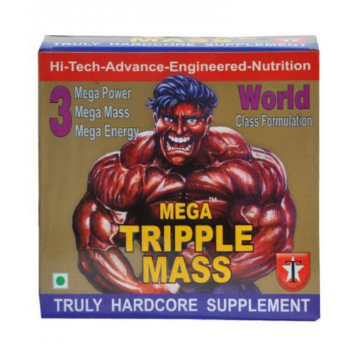 Mega Tripple Mass is world class formulation. It's a truly hardcore supplement. Supplement Facts Each dose (25Gms) contains: Tribullus Terrsterris(Gokhru) 200mg Mucuna Pruriens (Kaunch Beej) 200mg Withania Somniferra (Ashwagandha) 100mg Whey Powder (Takar) 7.5gm Lactus (Milk Powder) 5gm Makka (Maize Starch) 5gm Sacrum (Sacrum) 7gmFSSAI's Initiative on Safe & Nutritious Food. Please visit https://www.snfportal.in