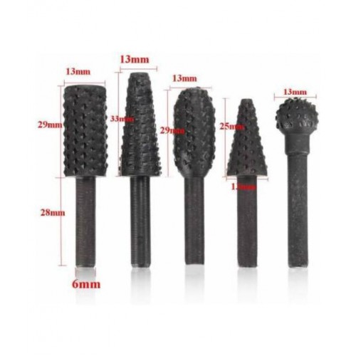 HIGH QUALITY: Made of high speed steel material, through fire dipped black surface treatment, ensuring its sharper and durable. ?INCLUDES 5 SHAPES: Ball, Oval, Cylinder, Large and Small cone, Rotary Rasp Burr Set Carving File Rasp 1/4 "6mm Shank Drill Bits Woodworking.High efficiency, and user-friendly. Convenient to drilling, simple to use, safe and reliable. ?HIGH PRODUCTIVITY: Rotary burr- processing efficiency than the