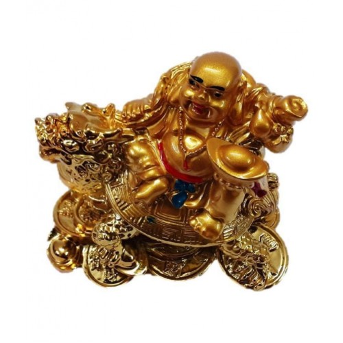 AFTERSTITCH laughing Buddha on tortoise Resin Buddha Idol 7 x 7 cms Pack of 1