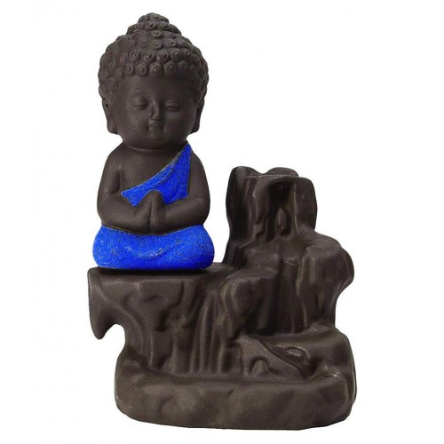 Back-flow cone incense burner creates an illusion of a smokey waterfall. This piece of art has lord Buddha sitting and meditating beside the waterfall. Simply place an incense cone at the top of the waterfall, and with the cone's special properties, the smoke starts to flow in reverse direction, that is from top to bottom, and in-turn creates a beautiful smokey waterfall. With scented smoke flowing in waves beside the Buddha, this makes the perfect housewarming gift for any home! Dedhas Store back-flow Buddha Incense burner comes with a box of 10 back-flow incense cones. This showpiece has been diligently handcrafted by skilled artisans using various traditional techniques