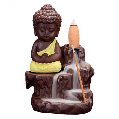 Shoppyana Microfiber Meditating Monk Buddha Smoke Backflow Cone Incense Holder with 10 Scented Cone, (Random color) Shoppyana presents you a series of incense holder cum showpiece figurine which is back-flow incense burner creates an illusion of a smokey waterfall. This piece of art has lord Buddha sitting and meditating beside the waterfall. Simply place an incense cone at the top of the waterfall, and with the cone's special properties, the smoke starts to flow in the reverse direction, that is from top to bottom, and in-turn creates a beautiful smokey waterfall, with scented smoke flowing in waves beside the Buddha, this makes the perfect housewarming gift for any home, back-flow buddha incense burner comes with a box of 10 back-flow incense cones. You can order more back-flow cones from us. This showpiece has been diligently handcrafted by skilled artisans using various traditional techniques.