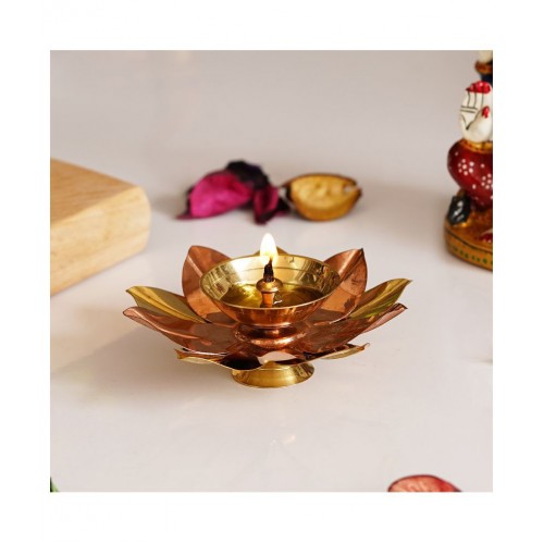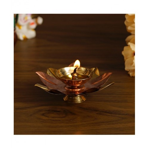 Lend a hint of decoration to your home with this eCraftIndia Large 6 Inch Floral Shape Metal Diya. Exquisitely designed, this Diya has unique antique look. This gorgeous and exquisite design is perfect for your home decor. It is made of metal in golden finish. It's a wonderful keepsake for your home and unique as gifts for your loved ones. This designer Deepak or Diya isn't just a Diya, its a multipurpose decorative embellishment for all modern homes. The beautiful diya is bright and beautiful for any temple or home and has been handcrafted by eCraftIndia using modern and traditional techniques.