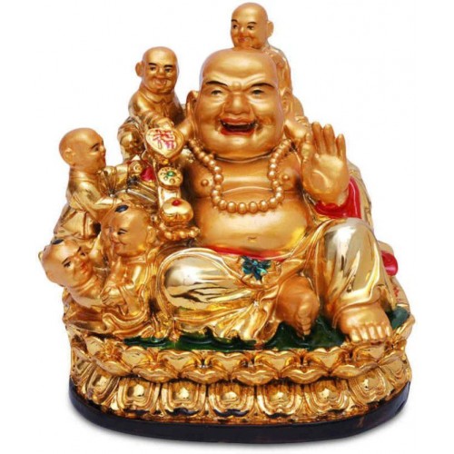 Laughing Buddha with children: Many statues show the Laughing Buddha surrounded by children. The most common number of children is five.