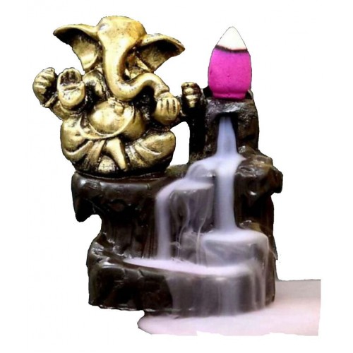 Incense holder Cum Showpiece Figurine Which is Back-flow incense burner creates an illusion of a smokey waterfall. This piece of art has lord Ganesha sitting beside the waterfall. Simply place an incense cone at the top of the waterfall, and with the cone’s special properties, the smoke starts to flow in reverse direction, that is from top to bottom, and in-turn creates a beautiful smokey waterfall. With scented smoke flowing in waves beside the Ganesha, this makes the perfect housewarming gift for any home.. Back-flow Ganesha Incense burner comes with a box of 10 back-flow incense cones. • 100% Ceramic • ✅ Material: Ceramic, handmade crafts & Unique design. • ✅ Collection: Exquisite gifts & Beautiful Home Decor. • ✅ Application scope: Living room, bedroom, study, office, meditation room, yoga room, hotel, library,etc. • ✅ Novelty: Need to use backflow incense cone, burning incense cone placed in the incense holders hole, there will be beautiful results.