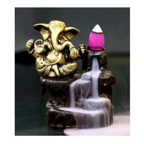 DEDHAS Smoke Ganesh Gold With10pcCone Resin Ganesha Idol 12 x 7 cms Pack of 1