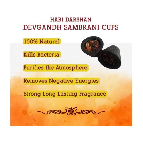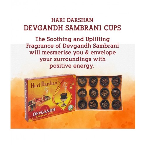 Hari Darshan Sambrani Cups, Made by Pure Guggal and Loban Sambrani is one of the oldest fragrances used in Ayurveda. This resin is a traditional and spiritual purifier and atmosphere, which can use to remove all negative energies from your home, work or worshipping environments. Envelop your surroundings with the extraordinary and uplifting sweetness of DEVGANDH smbrani cups and mesmerised by their soothing aroma. DEVGANDH sambrani cups are ideal to enhance your worship rituals and deepen your meditation practice