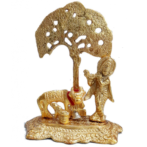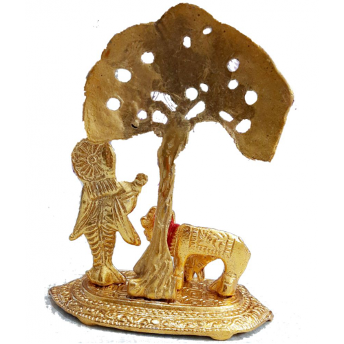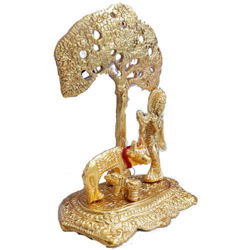 Bhoomi Enterprses brings you Nicely carved Krishna tree with kamdhenu cow and calf statue is in top quality of metal.