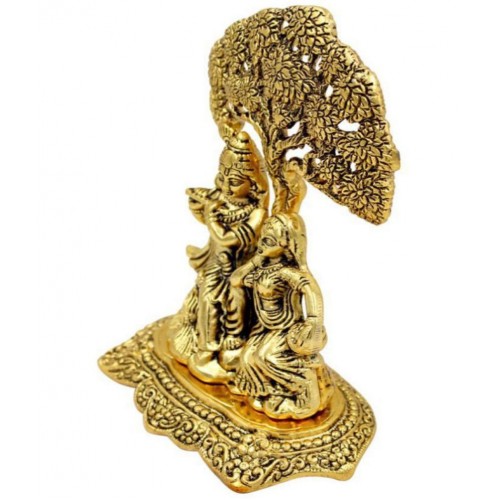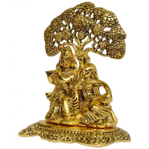 Radha Krishna Idol Sitting Under Tree Murti || Golden Plating White Metal Lord Radha Krishna Under Tree
