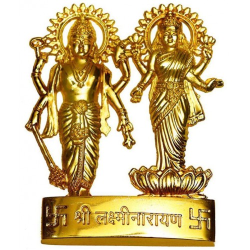 Goddess lakshmi is the wife of Lord Vishnu. Vishnu belongs to the trinity of Brahma-Vishnu-Mahesh or Shiv. Brahma creates everything in this universe, Vishnu preserves or sustains it, and Shiv ultimately destroys it. This is the cycle of nature and the rule or law of this universe. Goddess Lakshmi helps and is needed in every aspect Of Lord Vishnu's duty to preserve this world. She remains steadfast at her husband's side and never leaves him. Lord Kamdev is Goddess Lakshmi and Lord Vishnu's son. Lakshmi - wealth : Lakshmi is the Goddess of wealth and prosperity. Without a little wealth one cannot imagine how life could be sustained at all. Even a minimum requirement of food, clothing, or shelter requires some income. Vishnu - Dharma : Lord Vishnu is the "palanhar" or preserver-protector of this world. His duty is to balance good over evil in this world. By following this righteous path he sustains this universe.