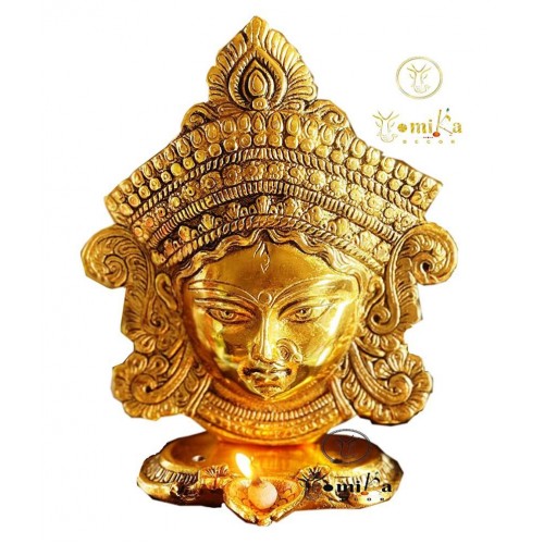 This is a beautiful, unique & gorgeous hand work on solid metal figure of hindu Goddess Maa Durga. Bless your place and heighten the beauty and spirituality of your house or work place with this Handmade Metal Statue Sculpture.This Handmade Sculpture is designed in aluminium using sand casting technique and has a golden color to it.Place this calm art piece in your living room for an effervescence beauty or gift it to your loved ones before he/she enters a new phase in life. Durga is the principal form of the goddess, also known as devi and Shakti in Hinduism. Durga the mahashakti, the form and formless, is the root cause of creation, preservation and annihilation. According to legend, durga was created for the slaying of the buffalo demon mahisasura by brahma, Vishnu, Shiva and the lesser gods, who were otherwise powerless to overcome him. Embodying their collective energy (Shakti), she is both derivative from the male divinities and the manifested representation of their power. This carving of durga is carved in metal. As it is a handmade piece slight changes in colour and form might be there.