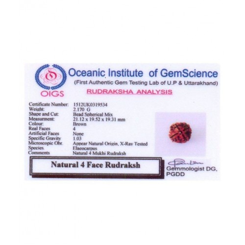 Four mukhi Rudraksha is a symbolic to Load Brahma(god of Birth). It is good for meditation and yoga. Its increases confidence and devotional power.Good for Arthritis Patients & BP Disorders.