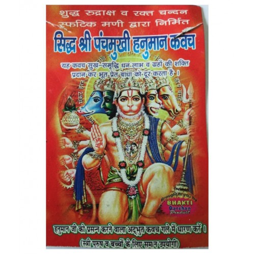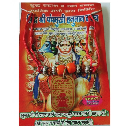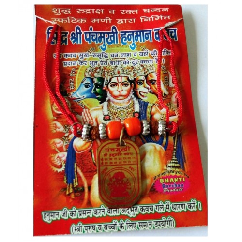 The Kawach is made of mystical rudraksha and inscribed with the powerful image of Lord Panchamukhi Hanuman.