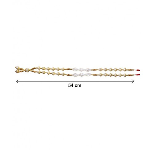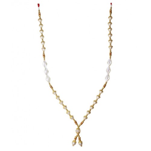 White Pearl with Beautiful Golden beads Handmade Mala / Garland for our Idols, Photos of Gods and our missed and loved departed souls. This mala is made of artificial white pearls and golden embellishments with stylish beads to give an everlasting beautiful look for decorating our Idols and Photo frames.