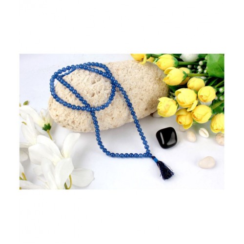 Elegant mala made of round and uniform natural blue jade gemstone beads with silk tassel is ideal for chanting months. The translucent mala brimming with beauty and luster also makes an elegant accessory. Blue Jade enhances creativity, wisdom, knowledge and understanding and brings tranquility. It also helps heal ailments relating to lungs and nerves.