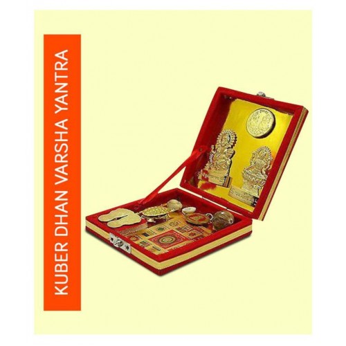 This Shri Kuber Dhan Laxmi Varsha Yantra is made with brass metal. Keep this shri kuber dhan laxmi yantra in your home or in cash counter it will give you good luck and wealth.There is one laxmi ganesh,one dhan laxmi locket, gomti chakra, kauri,meru , laxmi charan paduka,kuber yantra.