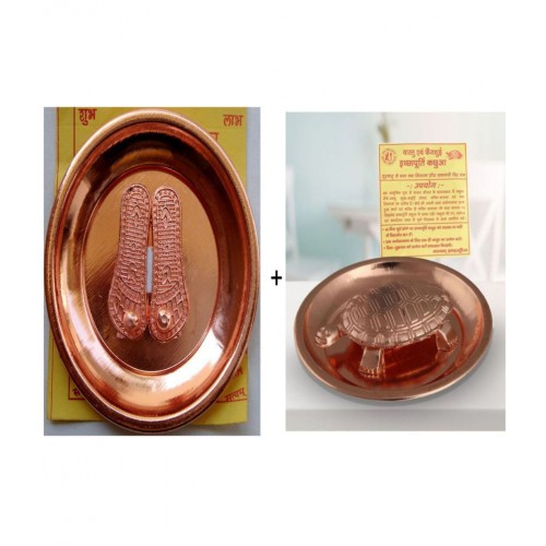 Charan Paduka + Copper Plated Kawach Yantra(Laxmi at uy place, it is believed that keeping lakshmi charan paduka in your pooja room, office,home or business.Vastu Metal Tortoise Gives Royal Look To Your Home Show Piece Can Be Fitted At Your Drawing| Office| Do Not Put In Bed Room With Water.